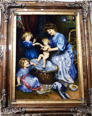 تابلو فرش مهر مادر که به نام حمام نوزاد نیز شناخته میشود از زیباترین تابلو فرش های مهر مادری است و جز تابلو فرش های پر فروش در این زمینه محسوب می شود . این تابلو فرش برای اولین بار در سردرود تبریز طراحی و بافته شده است و دارای رنگ بندی زیبا و چشم نواز است که میتواند به دکوراسیون منزل شما زیبایی خاصی ببخشد.